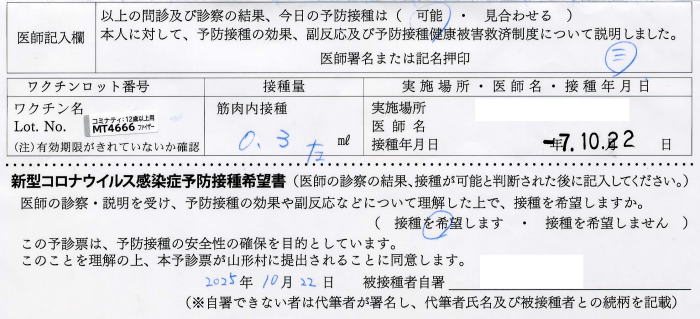 新型コロナワクチン予防接種